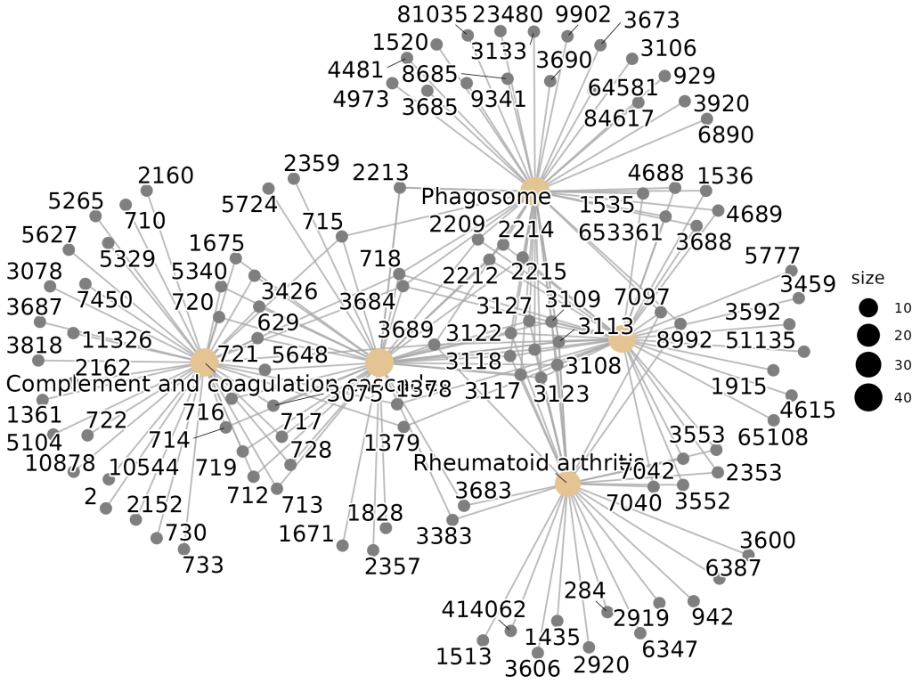 - Ridgeplots and category networks help highlight theme clusters among enriched results