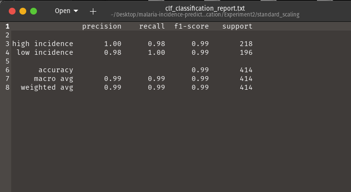 Generates.txtreports including precision, recall, F1, support, and accuracy for all classes.