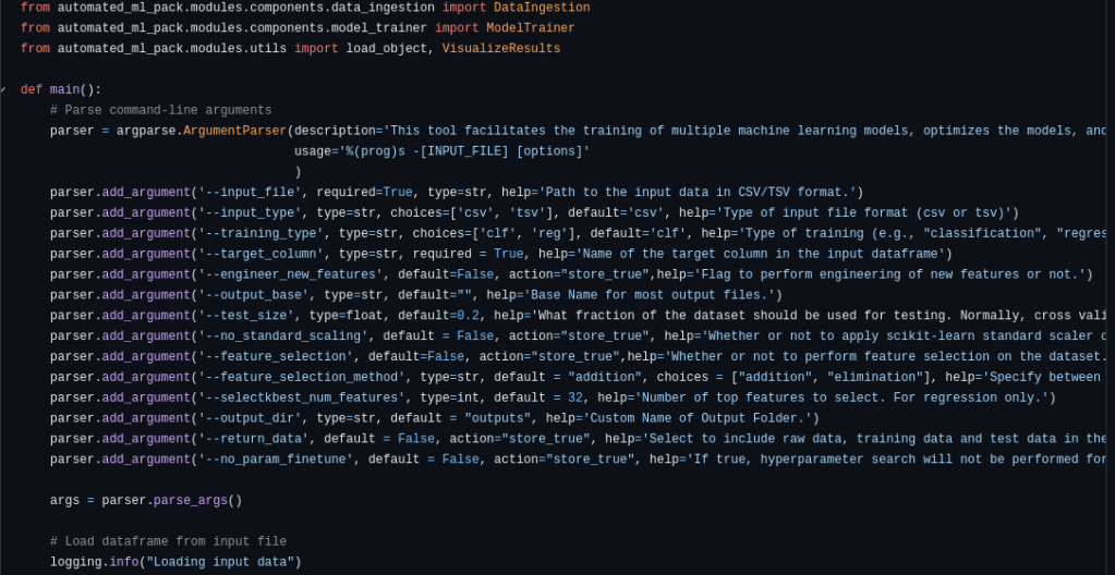 - Project Goal: To streamline the end-to-end machine learning workflow—from data ingestion to evaluation and visualization—using a command-line-enabled Python package
